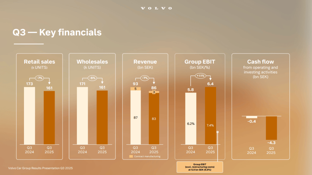 2025年第一季度净利润从去年同期的47亿克朗下降至19亿克朗,暴跌50%。第二季度,由于美国加征关税,汽车卖不出去,造成114亿克朗的高额财务减值。财务状况非常糟糕。